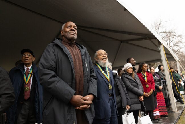 Dozens gathered at Boston Common to witness the unveiling of The Embrace statue honoring Dr. Martin Luther King Jr. and Coretta Scott King.