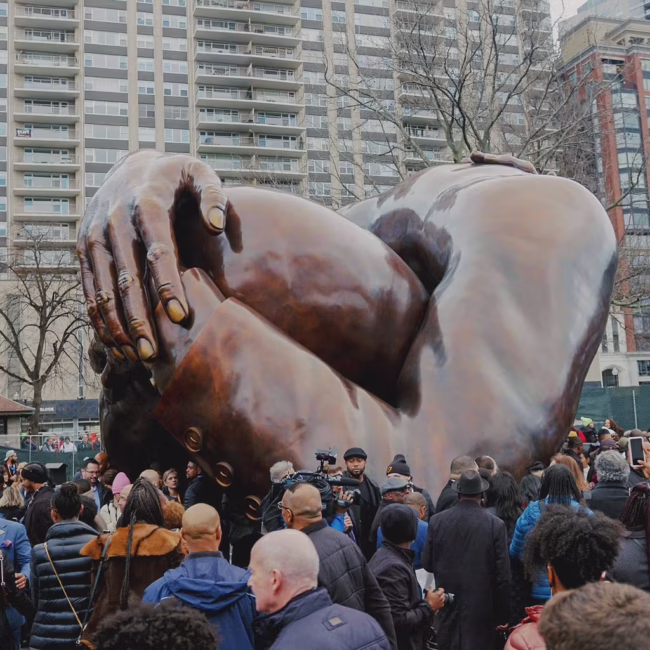 WALKING THROUGH the Boston Common, the towering bronze sculpture is hard to miss. Stories-tall winding metal depicts the embracing arms of Rev. Dr. Martin Luther King Jr. and Coretta Scott King.