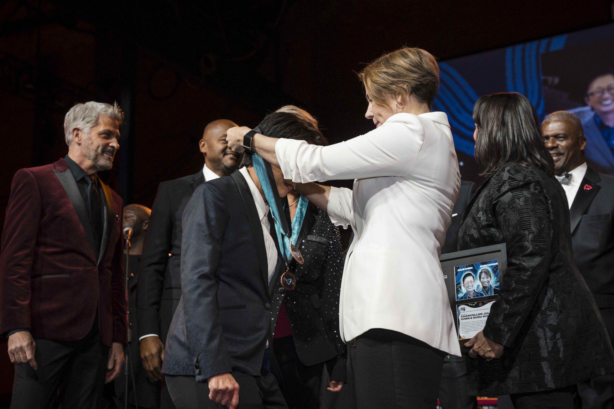 Embrace Honors MLK 2026 brought together community, partners, and leaders to reflect on what is possible when people gather with shared purpose and care. The evening honored extraordinary individuals whose work embodies courage, equity, and collective responsibility, including Secretary Lonnie G. Bunch III; Chancellor Julie Chen & Susu Wong; Lady Luella & Bishop William Dickerson; Patricia & Thomas O’Brien; Marie St. Fleur; and Kathy & Richard L. Taylor.